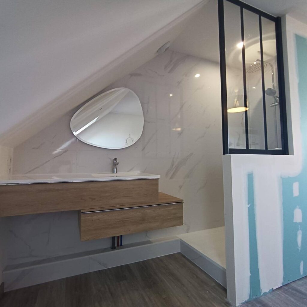 Sur demande, oui. Nous pouvons vous guider dans le choix des matériaux (carrelage, plaques de plâtre, isolants…) et vous proposer des fournisseurs partenaires de confiance. Vous pouvez aussi fournir vos matériaux si vous le souhaitez.